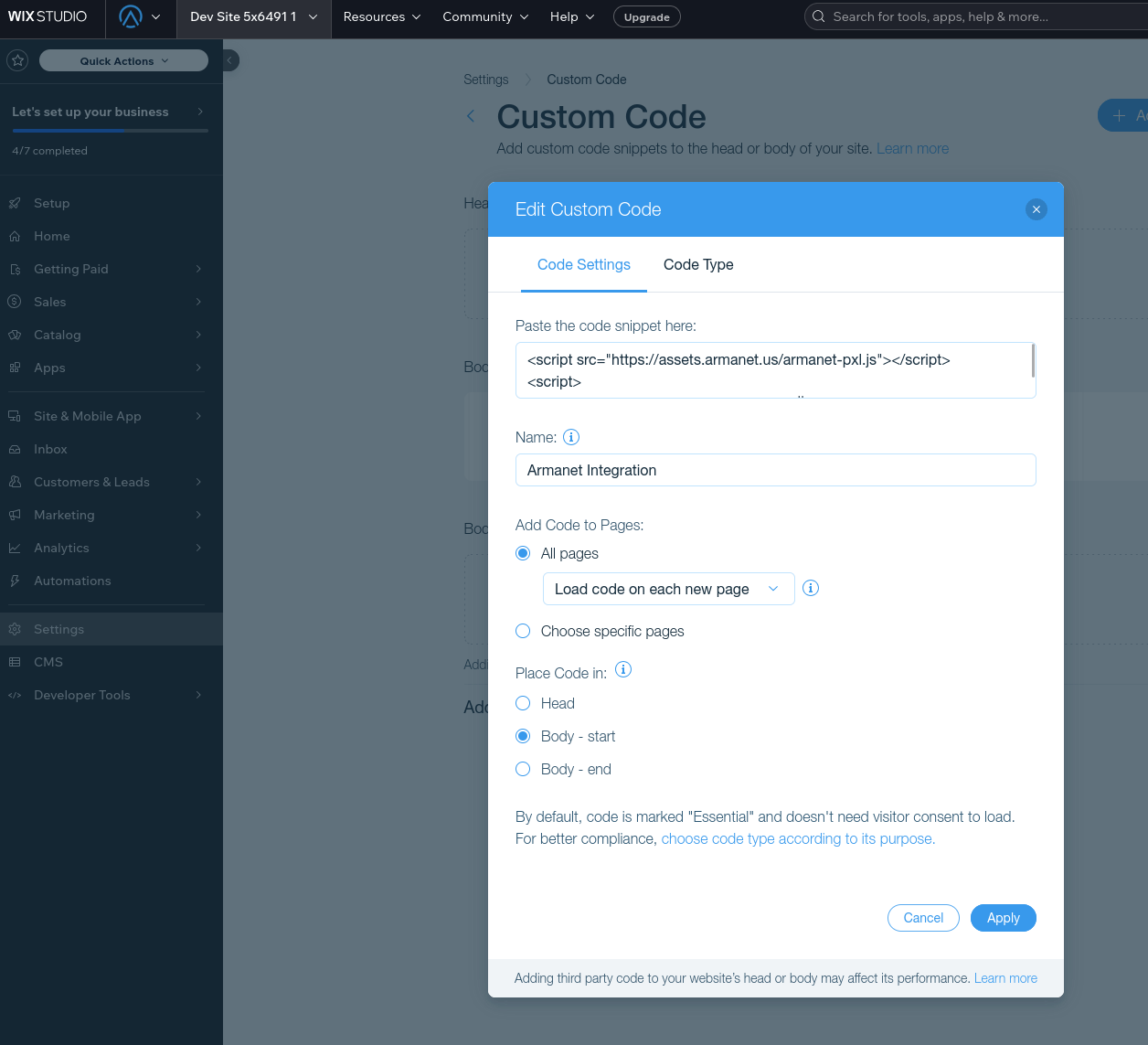Integrating Armanet with your Wix store is a seamless process that can be completed in just a few steps. This guide will walk you through the process of installing the Armanet plugin in your Wix store, allowing you to track customer behavior, conversion rates, return on ad spend, and other key metrics.